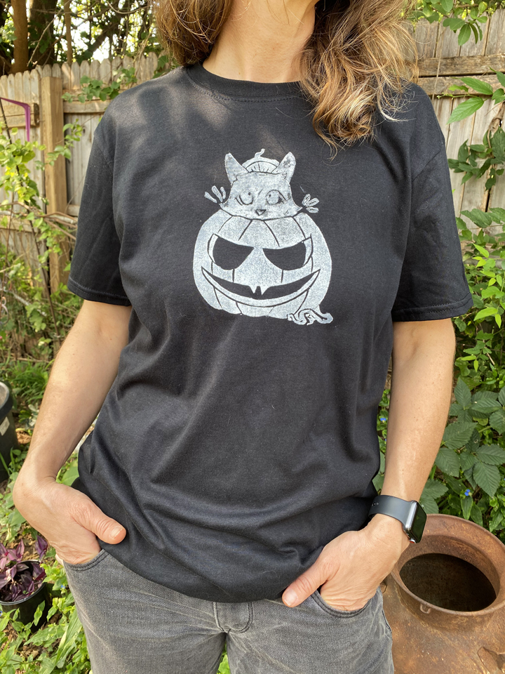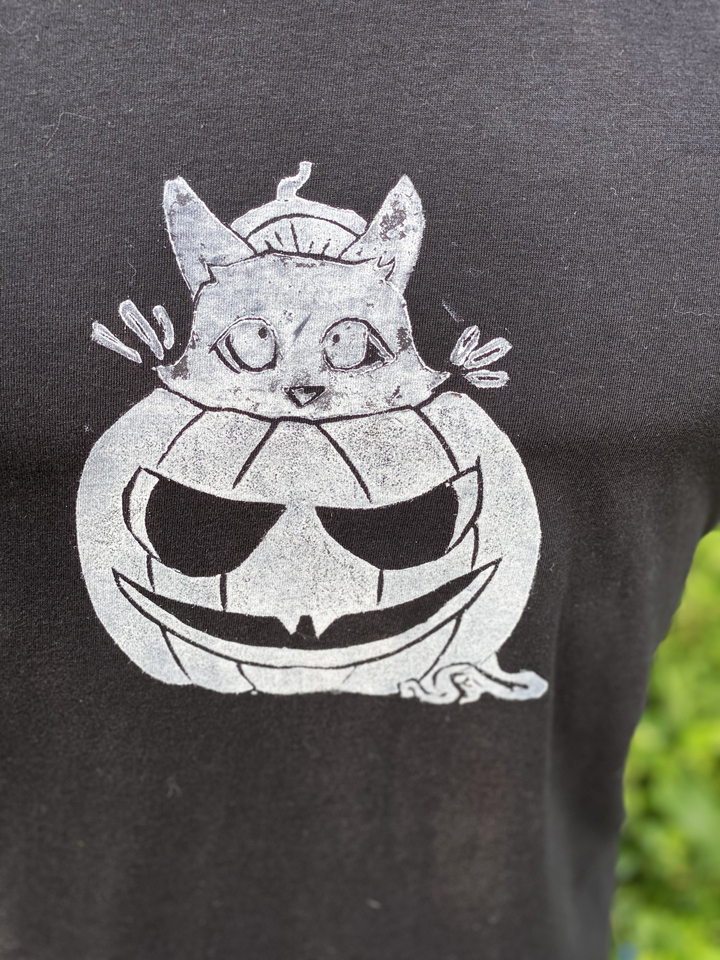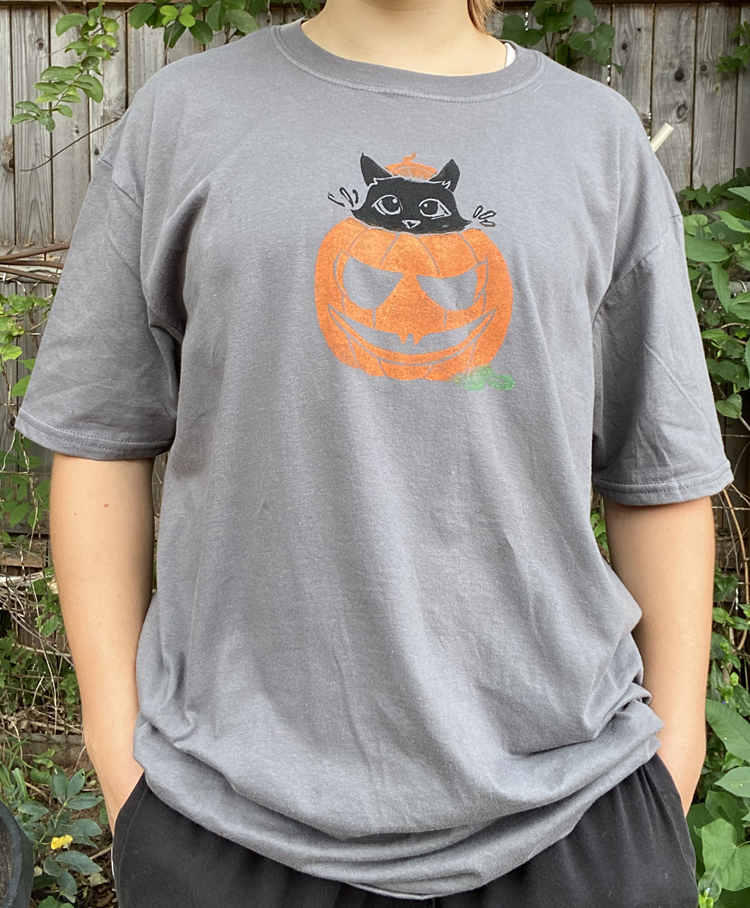 Carved image into a linoleum surface T-Shirt Colors available Navy Blue Black Gray White Gildan T-shirts that are made out of 50% cotton/50% polyester. Belle and Canvas 50% polyester, 37.5% combed and ring-spun cotton, and 12.5% rayon.