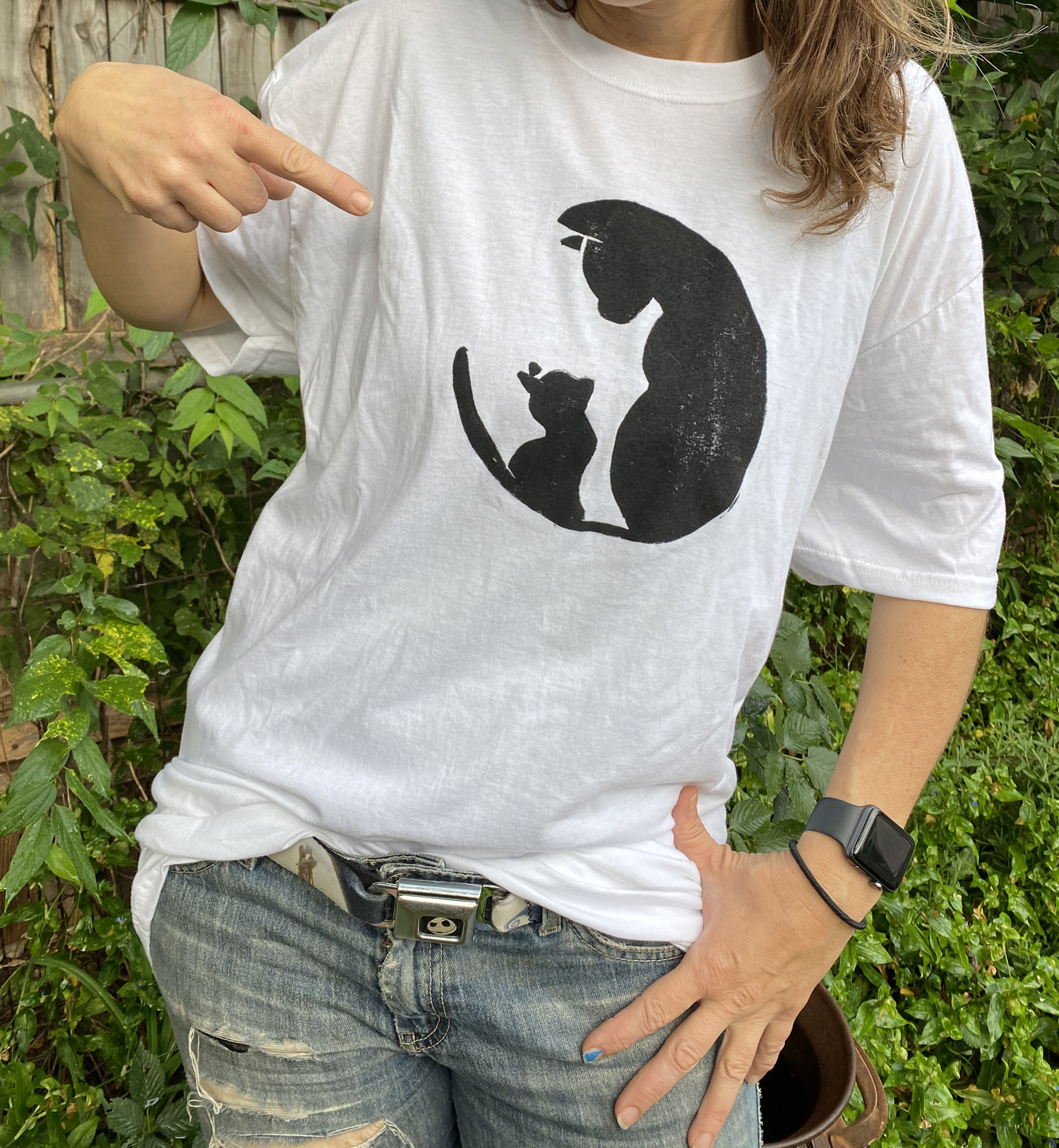 Carved image into a linoleum surface T-Shirt Colors available Navy Blue Black Gray White Gildan T-shirts that are made out of 50% cotton/50% polyester. Belle and Canvas 50% polyester, 37.5% combed and ring-spun cotton, and 12.5% rayon.