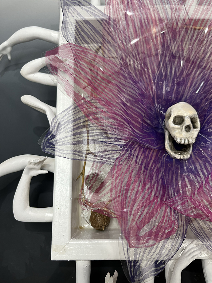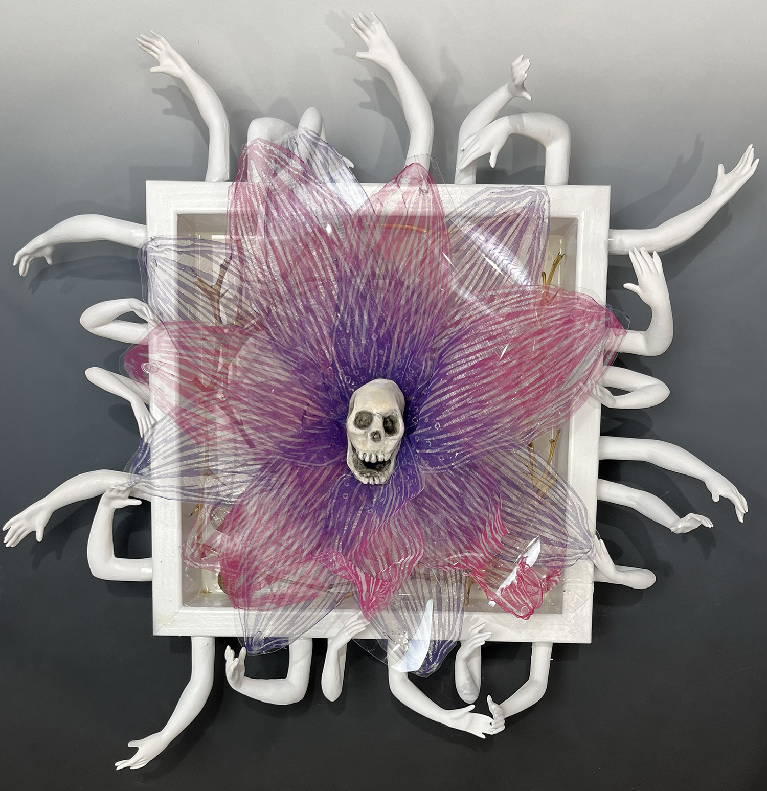 Inevitability of Death 12x12" Relief Printed Fabric Streched over Birch panel