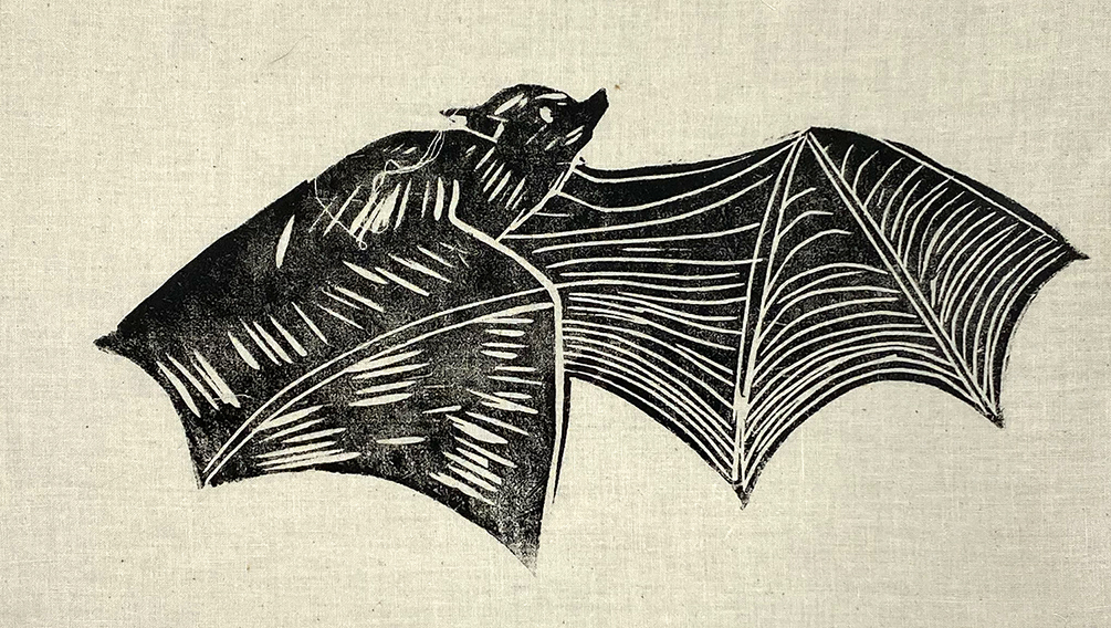 Relief Printed Bats on Fabric "9" in H x "12" in W Instagram - @aztrid_moan_artwork Facebook - @Aztrid Moan Twitter - @aztrid_moan