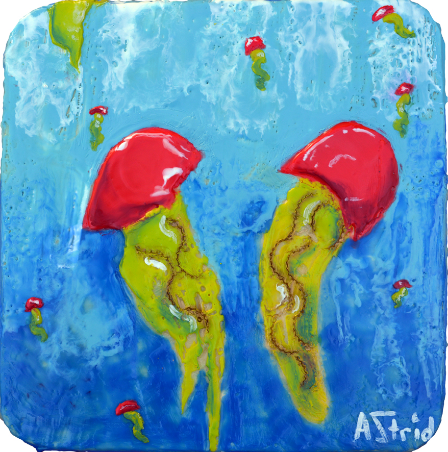 Jellyfish Landscape Encaustic on Birch "13"in H x "13"in W