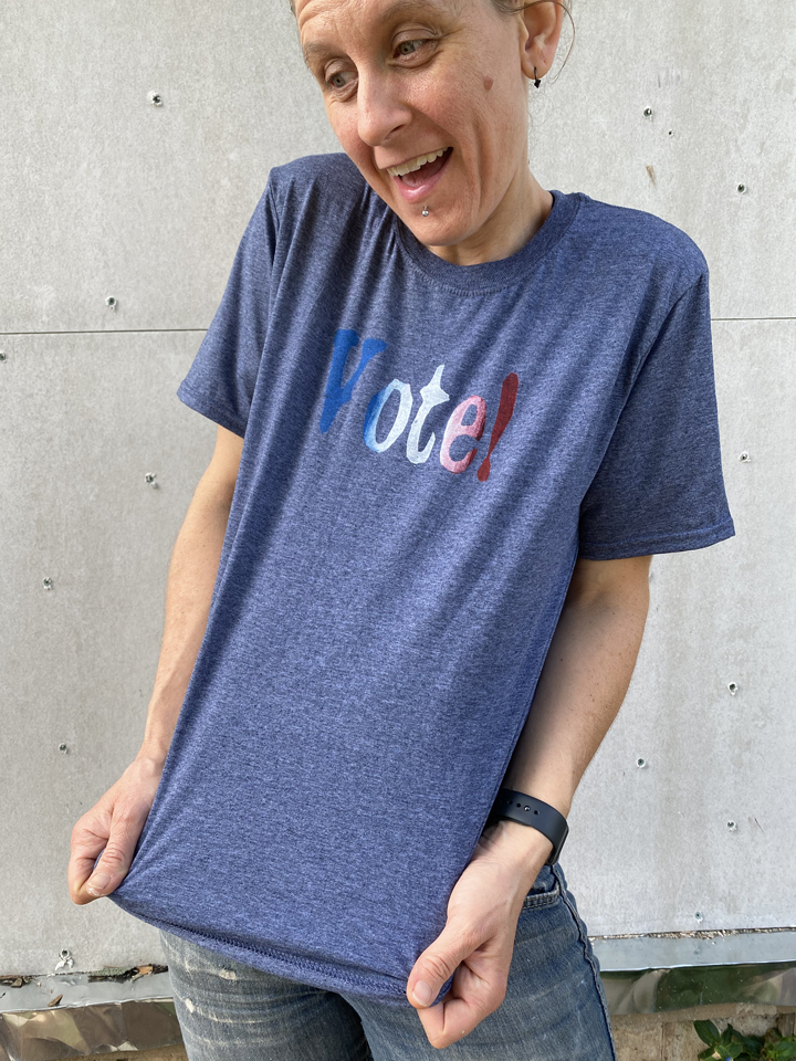 Carved image into a linoleum surface T-Shirt Colors available Navy Blue Black Gray White Gildan T-shirts that are made out of 50% cotton/50% polyester. Belle and Canvas 50% polyester, 37.5% combed and ring-spun cotton, and 12.5% rayon