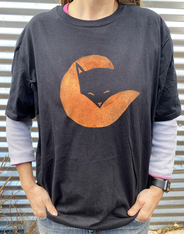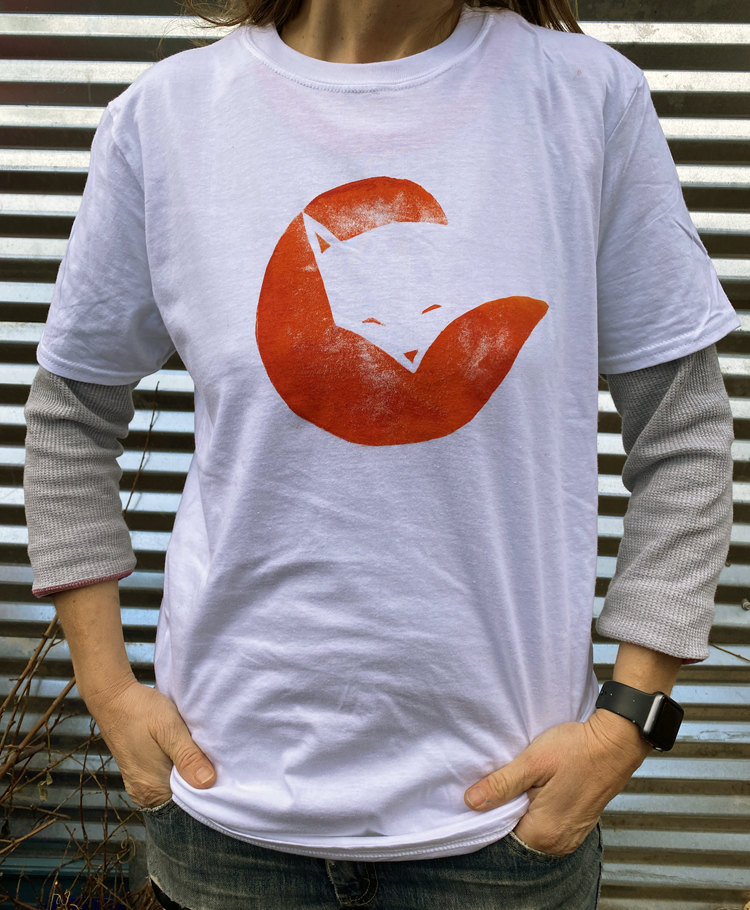 Carved image into a linoleum surface T-Shirt Colors available Navy Blue Black Gray White Gildan T-shirts that are made out of 50% cotton/50% polyester. Belle and Canvas 50% polyester, 37.5% combed and ring-spun cotton, and 12.5% rayon.