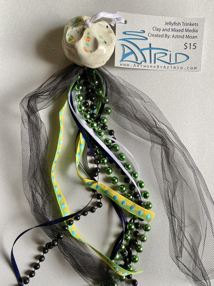 Cute little trinket made for a fun gift for your friends and family. The tops are made with clay with a mix of different ribbons for the tentacles