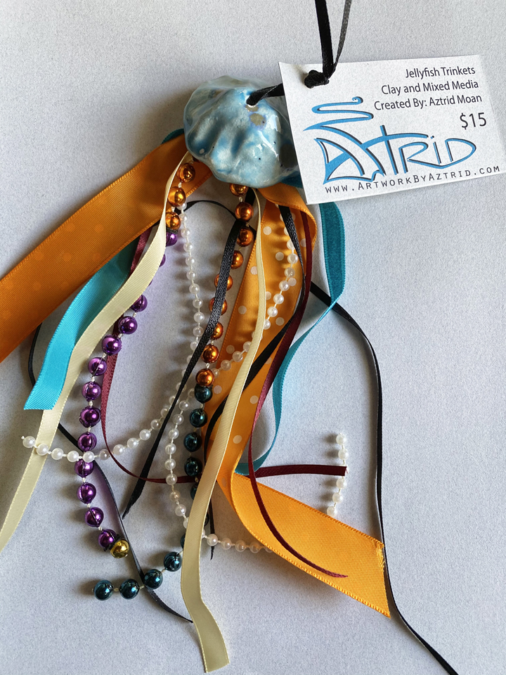 Cute little trinket made for a fun gift for your friends and family. The tops are made with clay with a mix of different ribbons for the tentacles