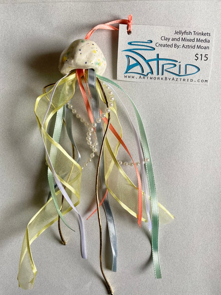 Cute little trinket made for a fun gift for your friends and family. The tops are made with clay with a mix of different ribbons for the tentacles