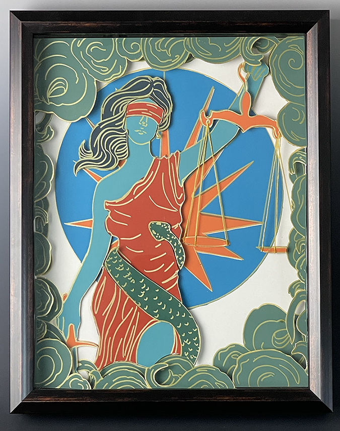 With the current political climate, I explored the image of Lady Liberty and what she represents symbolically to citizens. The combination of silkscreen and 3D sculpture brings a different dimension to the work, pulling the viewer closer and, hopefully, creating a dialogue with the spectator.